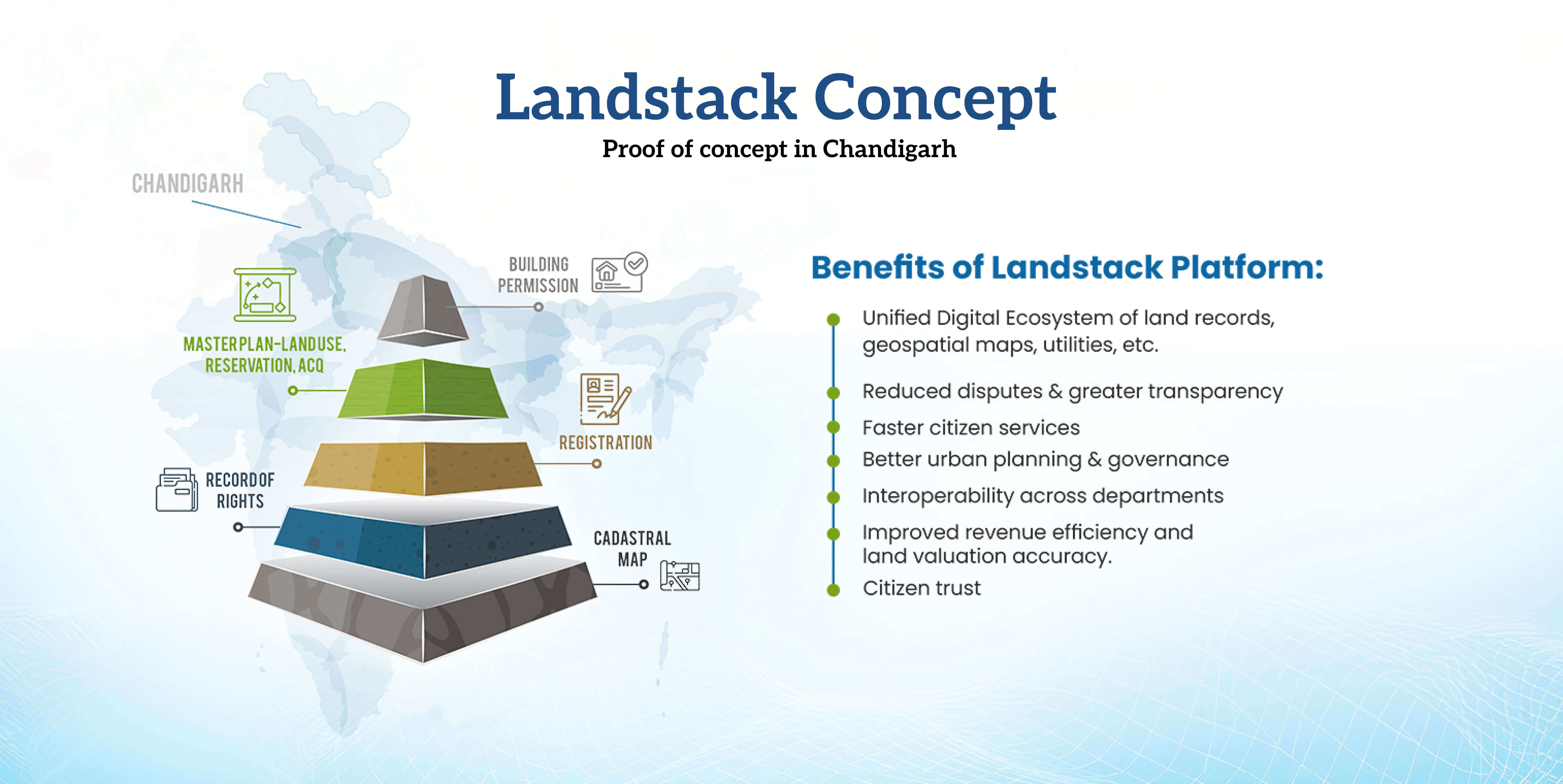 The Land Stack project is a government initiative, primarily in India, that aims to create a unified, transparent, and technology-driven land records management system by integrating existing land information into a single digital platform using Geographic Information Systems (GIS) and other modern technologies.